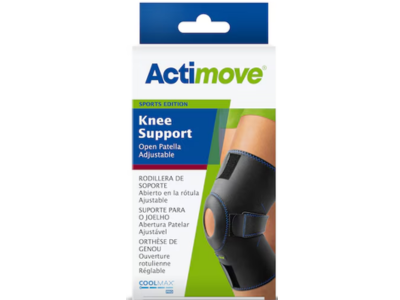 Enjoy sports again with Actimove’s Sports Edition Knee Support, Open Patella Adjustable which supports pain relief and healing in minor knee injuries. An open design helps relieve pressure in the patella, and the support’s wrap-around style makes it easy to apply. Stay comfortable no matter the activity by adjusting the level of support.